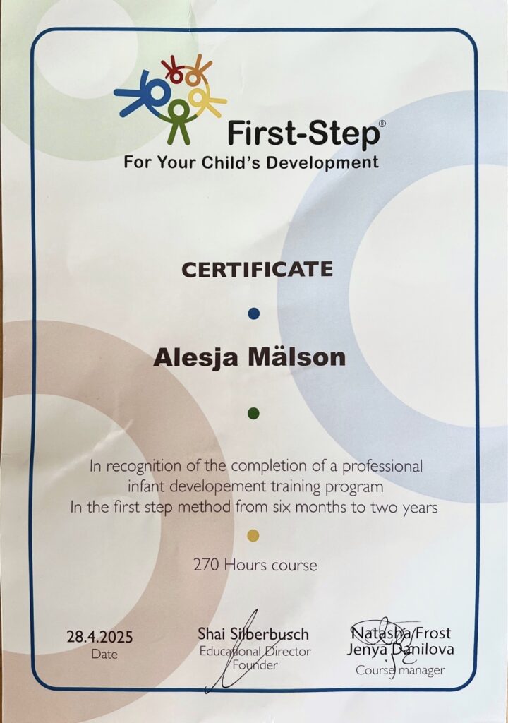 Grupitunnid 0–24 kuu vanustele lastele vastavalt rahvusvahelisele First Step süsteemile.